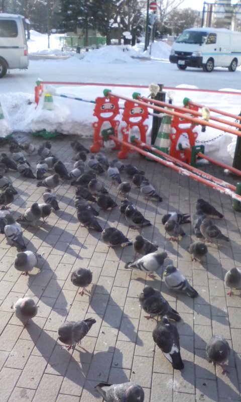 大通りで信号待ちしてたら、湧いてきた鳩の大群。