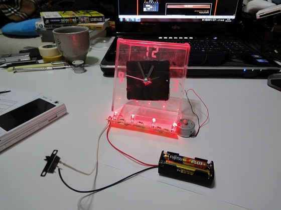 こんな感じに。時計の数字はデジタル表記に。LED回路はアクリルライトスタンドのあれを流用。