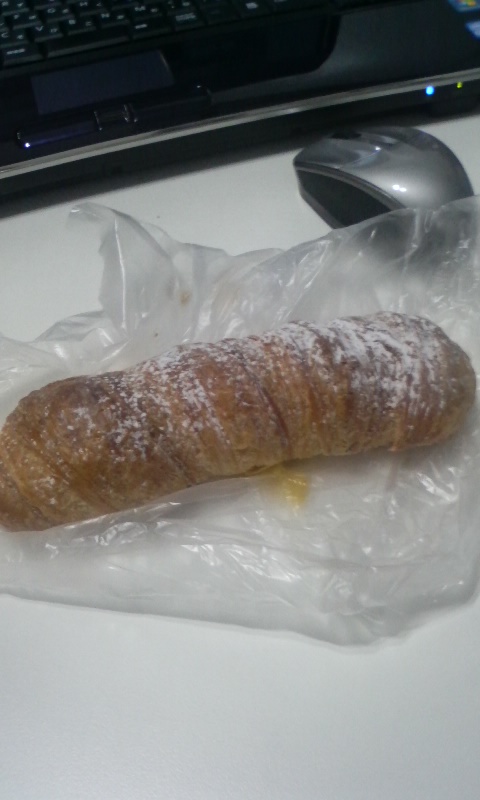 もりもとのパン。名前はホーン。中身はカスタードクリーム入っててうまいよー