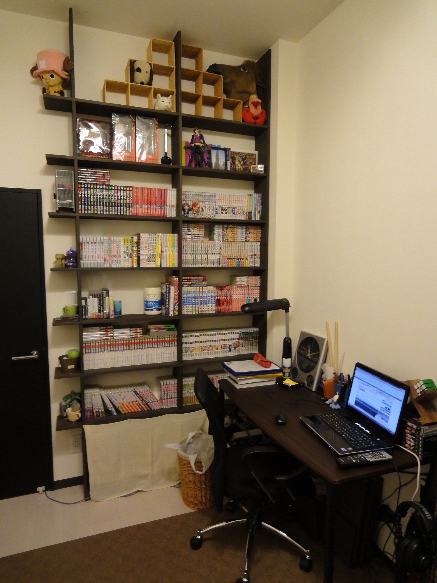 まずは本棚と机周り。まぁここら辺は調子のってツイッターにあげまくってたからみんな知ってるよね。
