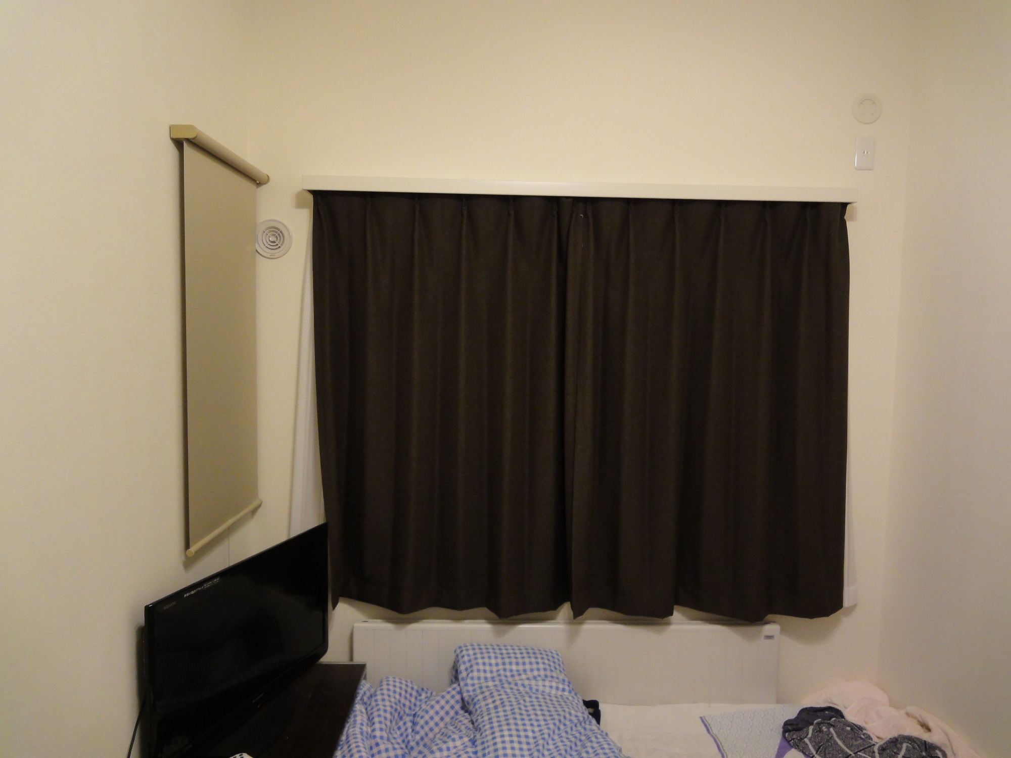 カーテン周り。なんかカーテンの色まで茶色にすると色に偏りが出るかなーって思ったけど結局は茶。